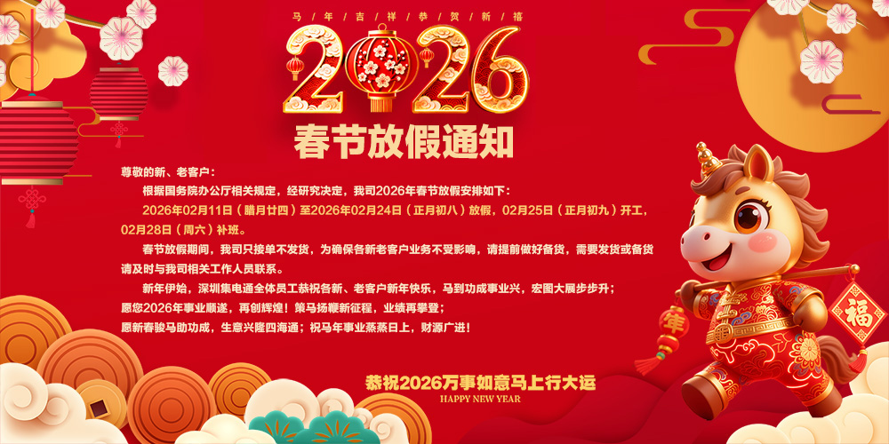 新年伊始,深圳集電通全體員工恭祝各新、老客戶新年快樂,馬到功成事業(yè)興,宏圖大展步步升;